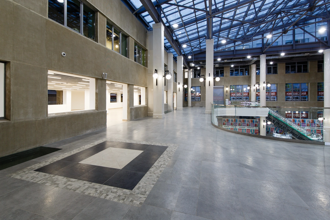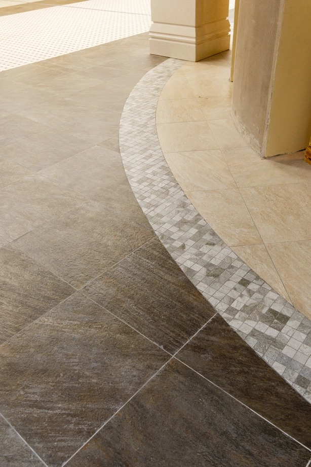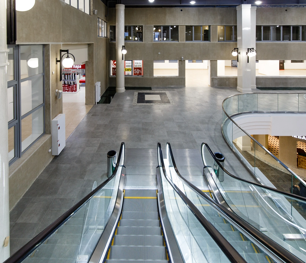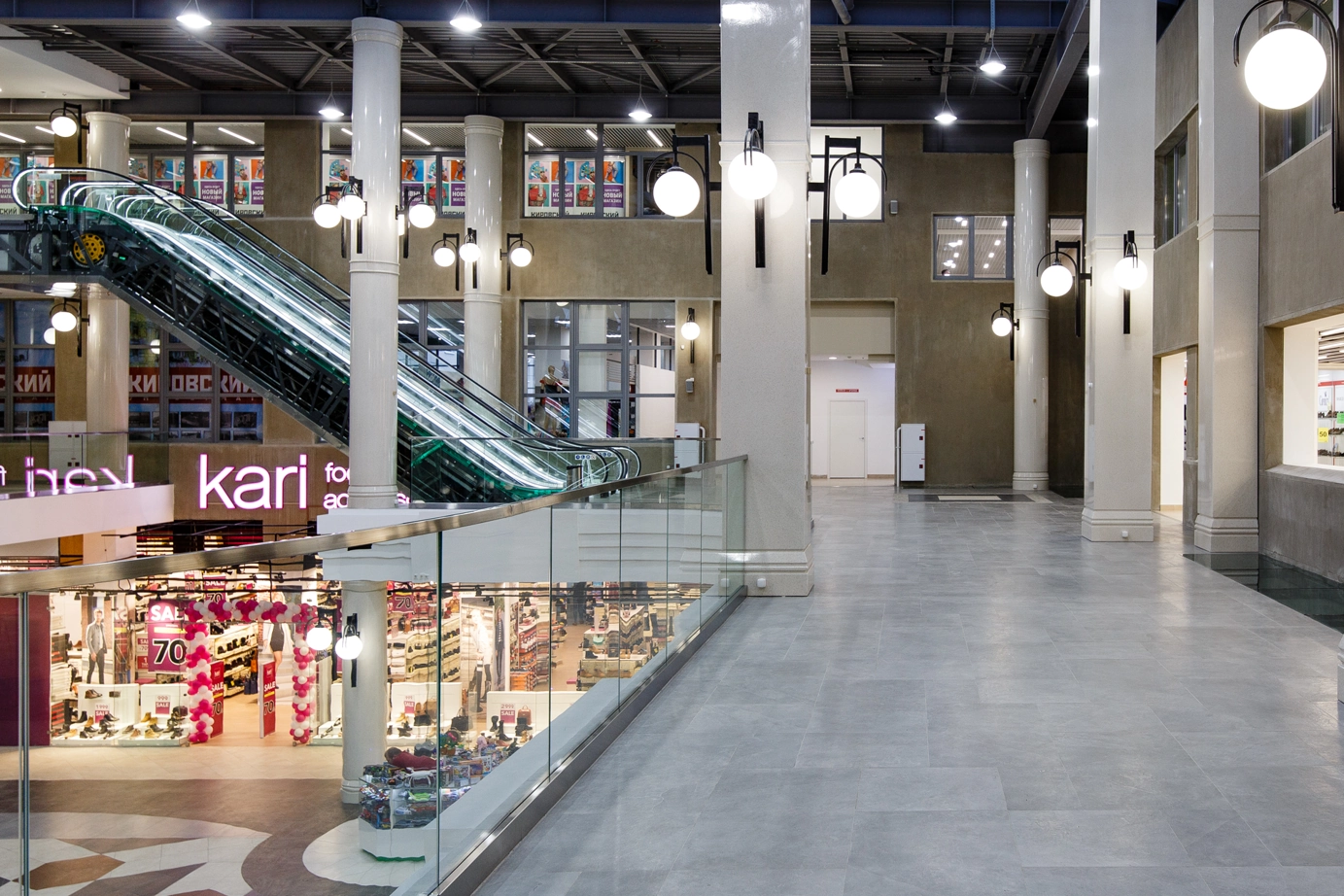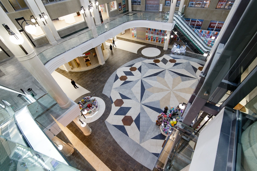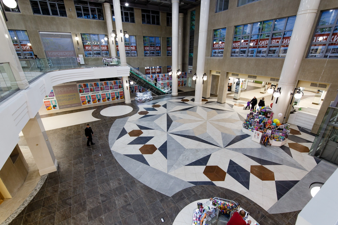 За основу были взяты природные текстуры в современной интерпретации, воплощенные в коллекциях керамогранита Italon. Каждый этаж универмага имеет уникальный дизайн. Галерею на 1 этаже украшают изысканные резные панно, выполненные из керамогранита  Climb, Materia, Surface и Contempora  в разных типах поверхности. Особенностью отделки  второго этажа стала мультиформатная укладка патинированного сланца  Materia Carbonio 60x120, 60х60 и 30х60.