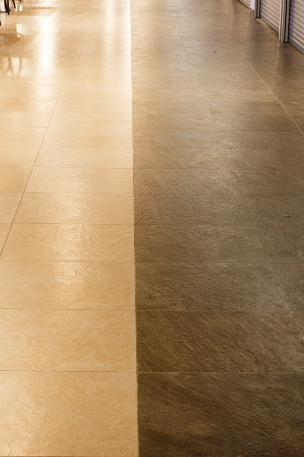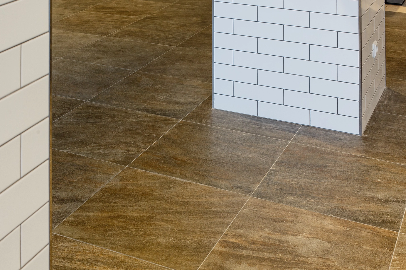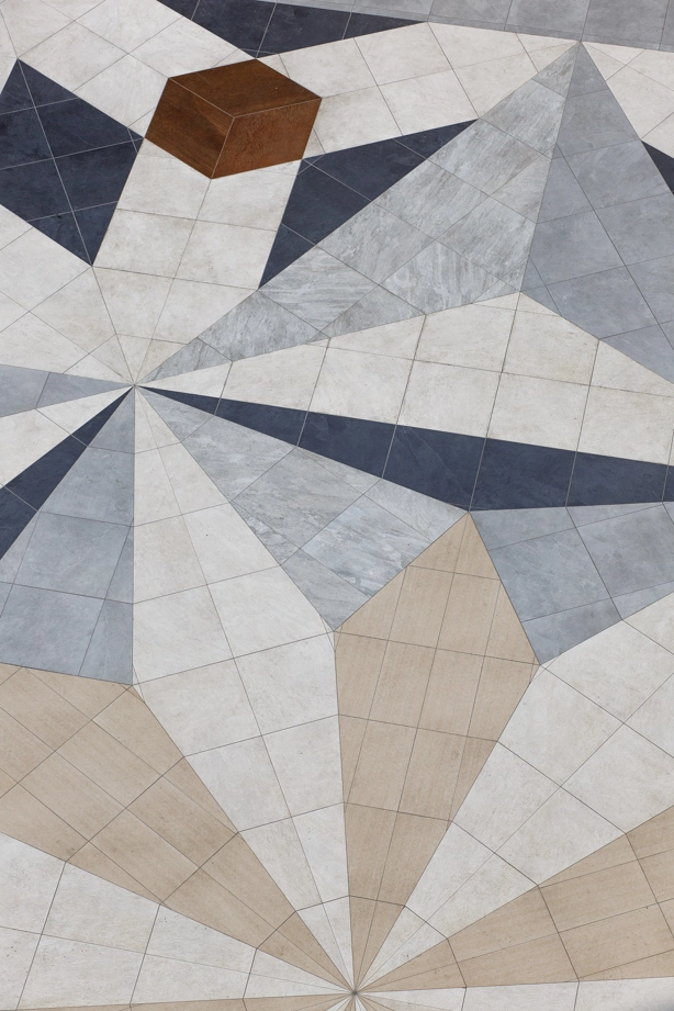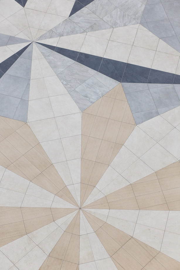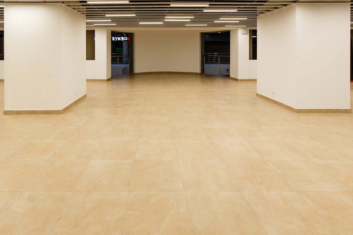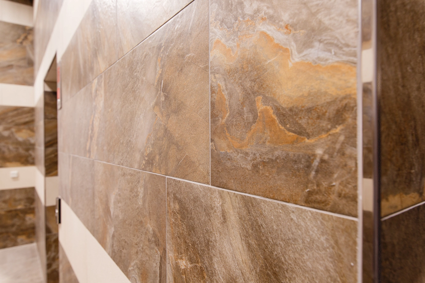 За основу были взяты природные текстуры в современной интерпретации, воплощенные в коллекциях керамогранита Italon. Каждый этаж универмага имеет уникальный дизайн. Галерею на 1 этаже украшают изысканные резные панно, выполненные из керамогранита  Climb, Materia, Surface и Contempora  в разных типах поверхности. Особенностью отделки  второго этажа стала мультиформатная укладка патинированного сланца  Materia Carbonio 60x120, 60х60 и 30х60.