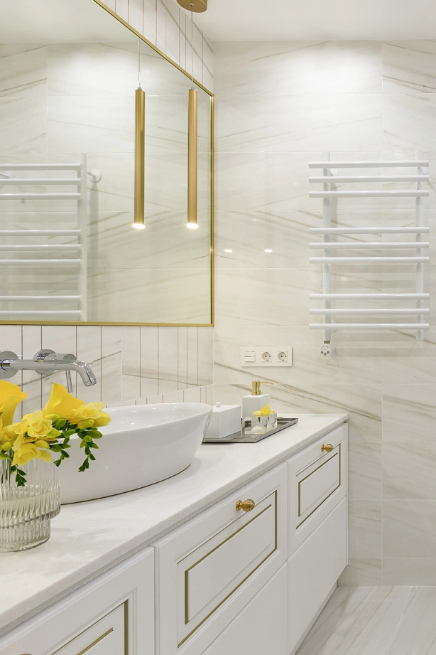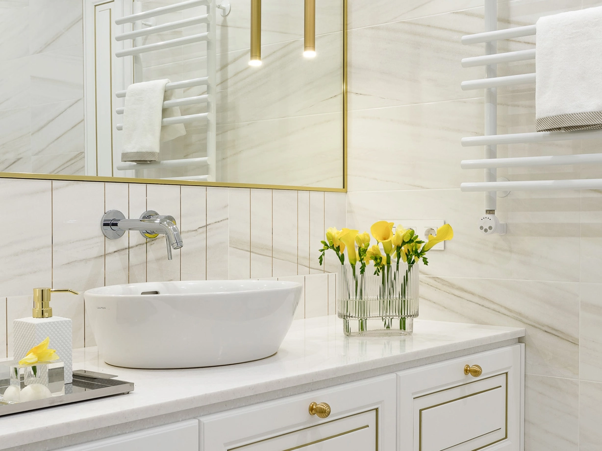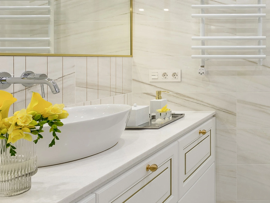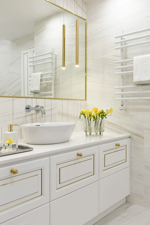 Второй санузел – воплощение мечты хозяйки. Ей хотелось не просто функционально и удобно, а чтобы было тонко, светло, легко, в едином настроении с интерьером всей квартиры. Для реализации этого пожелания прекрасно подошла коллекция керамогранита и настенной плитки Charme Extra в цвете Lasa.